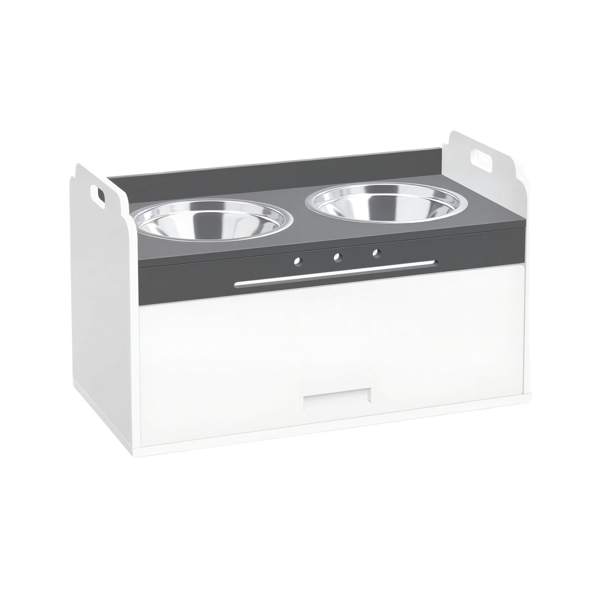 Suferiți din cauza faptului că câinele dumneavoastră mare se chinuie cu boluri joase și locuința e plină de accesorii pentru animale? Hrănirea poate fi stresantă, mai ales din cauza grijilor legate de solicitarea articulațiilor și mâncatul pe fugă. Bolul ridicat PawHut rezolvă problema. Această stație de hrănire pentru câini oferă o înălțime confortabilă pentru o digestie mai bună, pune la dispoziție spațiu de depozitare integrat pentru ordine și include un bol pentru hrănire lentă cu benzi antiderapante, făcând timpul mesei liniștit și ordonat.