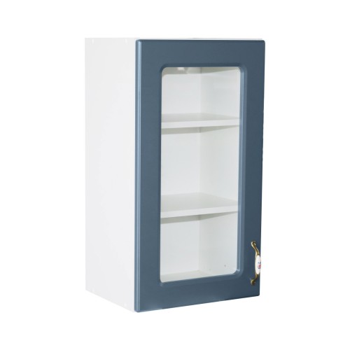 Corp superior 40 vitrina cu 1 usa Zebra MDF albastru drept. Dimensiuni (l x h x a): 400 x 720 x 307 mm Culoare: Alb, albastru. Materiale folosite: Pal melaminat, usa din MDF infoliat, maner metalic cu insertie portelan,balamale cu piston (inchidere soft close). Pachetul vine cu 2 dispozitive reglabile de suspendare corpuri mobila, din metal cu plastic alb (poza). *Nota: Schita de montaj nu se afla in interiorul coletului intre piesele de mobila. Schita de montaj o sa fie atasata pe spatele facturii.
