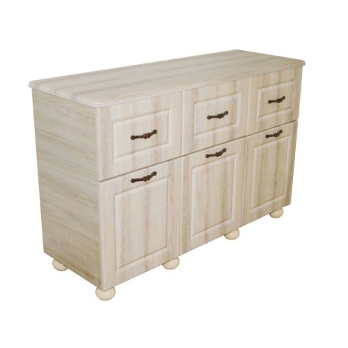Dynasty este o alegere eleganta si practica pentru living-ul dumneavoastra. Comoda cu 3 usi si 3 sertare Dynasty are latimea de 1380 mm, adancimea este de 480 mm, iar inaltimea este de 905 mm. In spatele usilor se afla 6 spatii de depozitare. Usile si fetele sertarelor sunt fabricate din MDF Sonoma cu grosimea de 18 mm si sunt frezate pentru un aspect deosebit. Manerele metalice antichizate impreuna cu picioarele din lemn vopsit ofera de asemenea o eleganta aparte. Capacul comodei este fabricat din MDF Sonoma cu grosimea de 25 mm pentru o rezistenta sporita la depozitarea obiectelor grele pe comoda, dar si pentru un aspect placut. Carcasa comodei este fabricata din PAL melaminat Sonoma cu grosimea de 16 mm. Sertarele au glisiere cu bile cu amortizare pentru o silentiozitate sporita, dar si pentru posibilitatea de a depozita obiecte grele in sertare. *Nota: Schita de montaj nu se afla in interiorul coletului intre piesele de mobila. Schita de montaj o sa fie atasata pe spatele facturii.