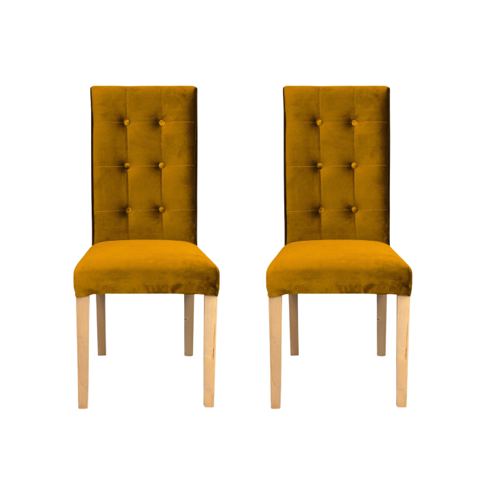 Set 2 scaune living TEO LUX, picioare lemn natur, stofa galben, 46x60x98 cm