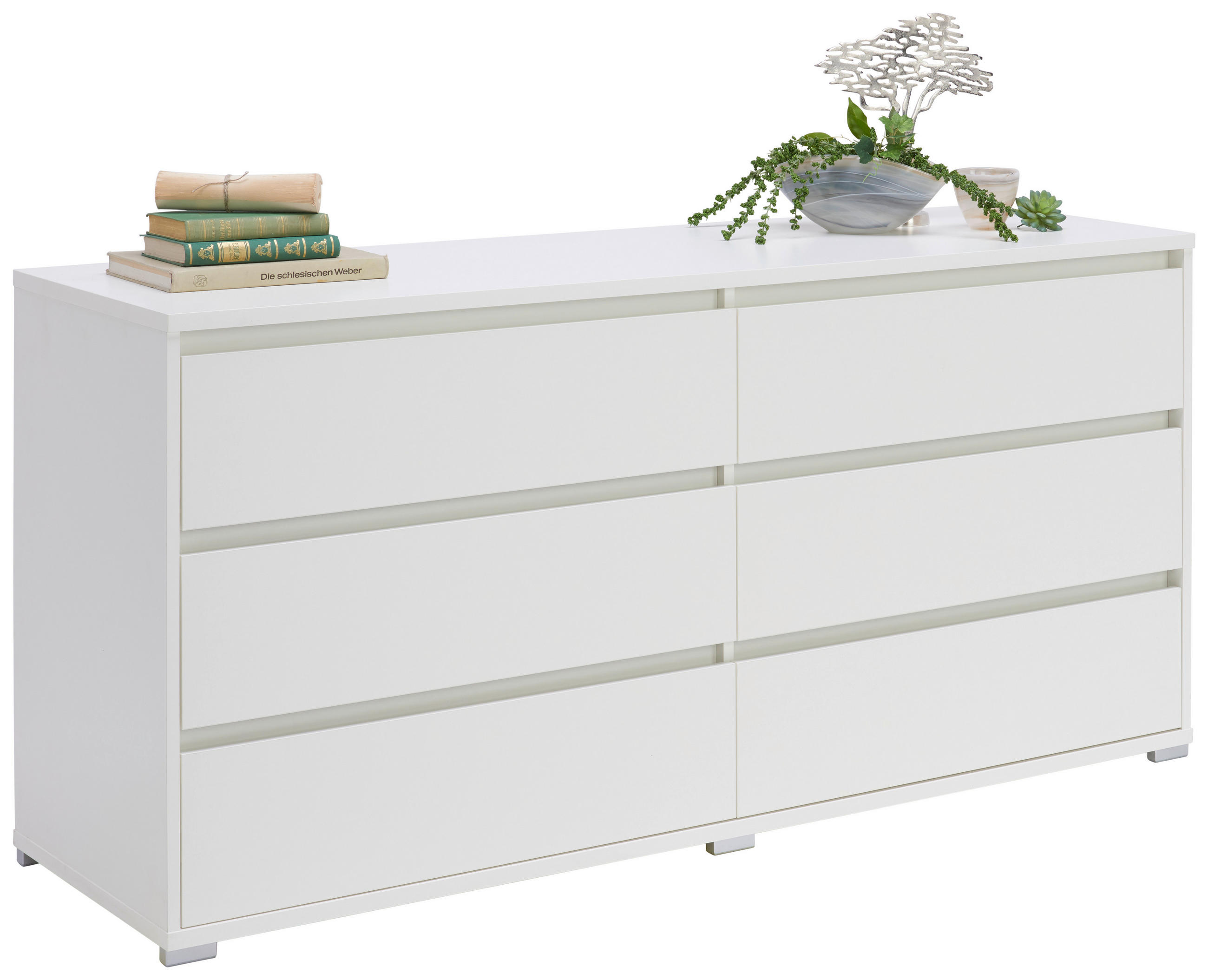 Comodă albă cu 6 sertare: Mobilier de depozitare practic Această comodă în alb cu 6 sertare combină un aspect elegant cu o funcționalitate inteligentă. Lucrurile dvs. sunt depozitate ordonat în cele 6 sertare . Fie că este vorba de rechizite de birou în birou, haine în dormitor sau colecția de jocuri în camera de zi - piesa de mobilier de 160 x 79 x 48 cm (L x H x A) se dovedește a fi un accesoriu inteligent peste tot. Schema de culori deschise în combinație cu limbajul de design simplu emană un aer calm și prietenos care se integrează armonios în numeroase stiluri de amenajare. Designul este completat de fronturi fără mâner. Această comodă albă cu 6 sertare este finisajul perfect pentru interiorul casei dumneavoastră!