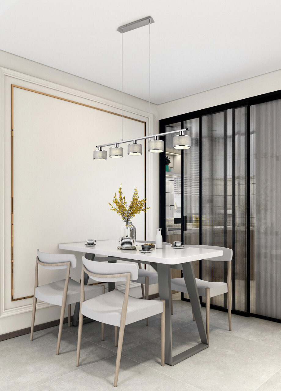 Seria de corpuri de iluminat KAPRUN - o combinatie de fler cald si lumina! Combinatia reusita a formelor cilindrice si a materialului textil de inalta calitate creeaza o ambianta eleganta si armonie luminoasa. Lustra cu cinci becuri asigura, de asemenea, reflexii calde si un joc de lumina confortabil si primitor deasupra unei mese sau a blatului de bucatarie. Nuantele elegante de culoare in argintiu si gri adauga o nota individuala casei dumneavoastra si subliniaza efectul „wow”. Pentru o iluminare moderna si fiabila, se recomanda utilizarea unui bec LED. Acesta ofera o calitate inalta a luminii, este versatil si convinge prin iluminarea uniforma. Durata lunga de viata si generarea redusa de caldura il fac alegerea ideala pentru o gama larga de aplicatii.Brandul TRIO ofera un portofoliu diversificat de produse inovatoare in domeniul iluminatului. Gama include idei de iluminat decorativ si functional pentru spatii interioare si exterioare.SpecificatiiBecurile nu sunt incluse.Grad de protectie: IP20Tensiune si frecventa: 230V ~ 50HzClasa de eficienta FTip soclu: 5x E14Putere: 28W