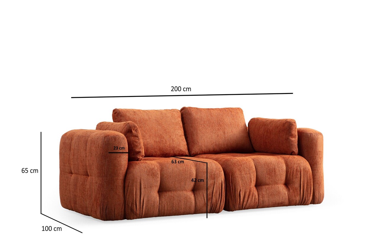 Canapea 2 locuriTesatura: PoliesterLungime: 300 cm Width: 120 cm Inaltime: 65 cmSpuma: 28 DNS spumă moale gri / 24 DNS Feather60% spumă tăiată / 40% spumă de silicon pentru spateBack Pillow: 50 x 50 cmPernele sunt incluse.Picioare: Picioare mici din plastic negru (3 cm)Inaltime sezut: 42 cm Adancime sezut: 81 cmSeat Depth width Pillows: 63 cmLatime spate: 65 cmLățimea cotierei: 23 cmInaltime cotiera: 65 cm