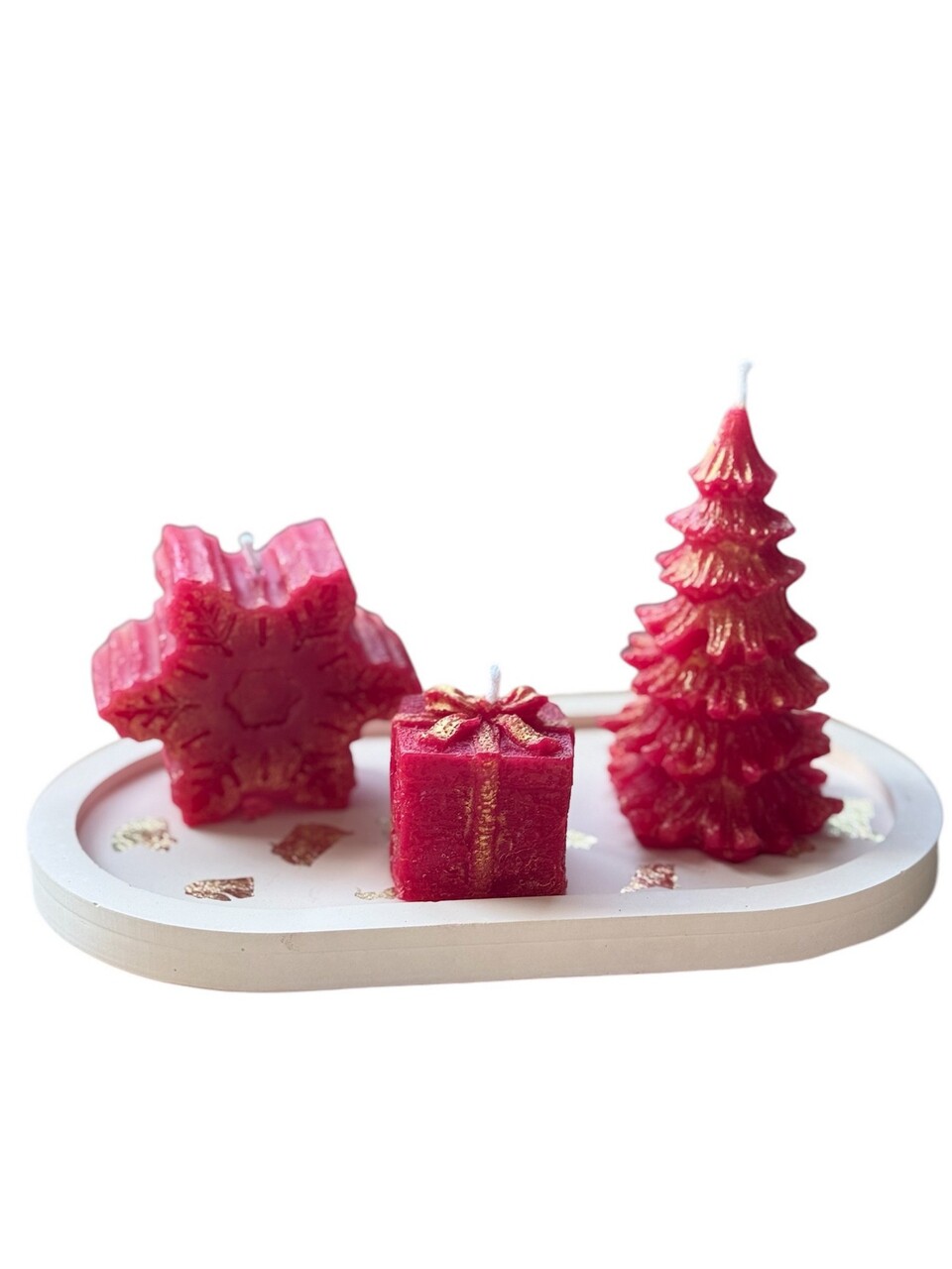 Set de lumanari (4 piese)Lumanare: SoiaLumânare 1: 5 x 5 x 10 cmLumânare 2: 5 x 5 x 5 cmLumânare 3: 8 x 8 x 3 cmDimensiunea plăcii : 18 x 9 x 2 cm