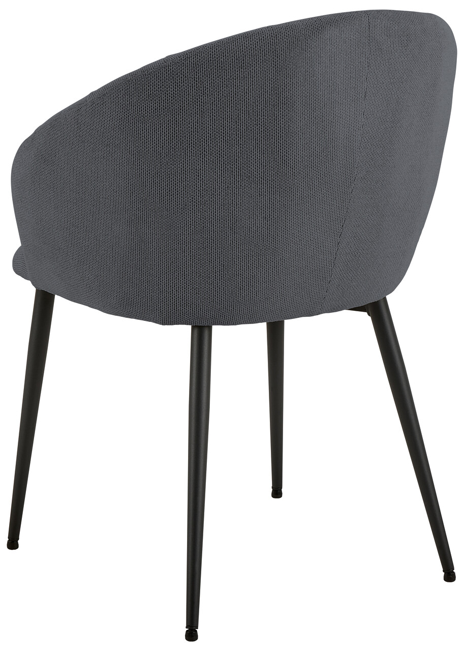 Bucura-te de acest scaun de dining si de fiecare detaliu - nu va incarca incaperea, ci ii va adauga o nota subtila de eleganta. Spatarul rotunjit si cusaturile verticale ii confera un aer stilat care atrage privirea, iar picioarele subtiri din otel negru creeaza un contrast placut cu tapiteria antracit.Compozitie materialMaterial tapiterie: material textil structurat, 93.8% poliester reciclat / 6.2% nailonRezistenta la abraziune (test Martindale): >70.000 cicluriTip tapiterie: tesatura Caso, antracit, cod 17.Material picioare / baza: otel, finisaj cu vopsea pulbere cu textura naturInformatii si dimensiuni specificeInaltime sezut: 46.5 cmLungime sezut: 49 cmAdancime sezut: 43 cmInaltime brate: 20 cmInaltime brate de la podea: 64.5 cmLatime brate: 7.5 cmAdancime brate: 19 cmInaltime spatar: 37 cmInaltime picioare: 39 cmCuloare baza / picioare: negru matProdusul necesita asamblare.Greutata maxima suportata: 110 kg