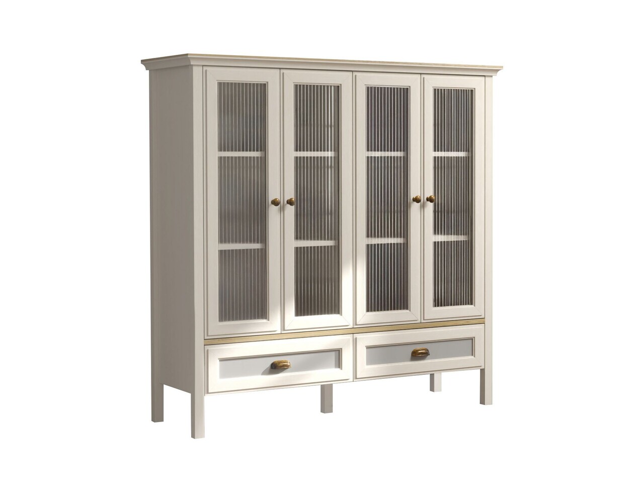 Dulap multifunctionalUsi: MDF Grosime: 18 mmBandă de cant: 0,8 mmGrosimea sticlei: 4 mmLatime: 136 cm Inaltime: 136,8 cm Adancime: 46,1 cmInaltimea piciorului: 15 cmPicioare profilate MDFMânere metaliceRafturi numeroasePoate fi fixat pe perete