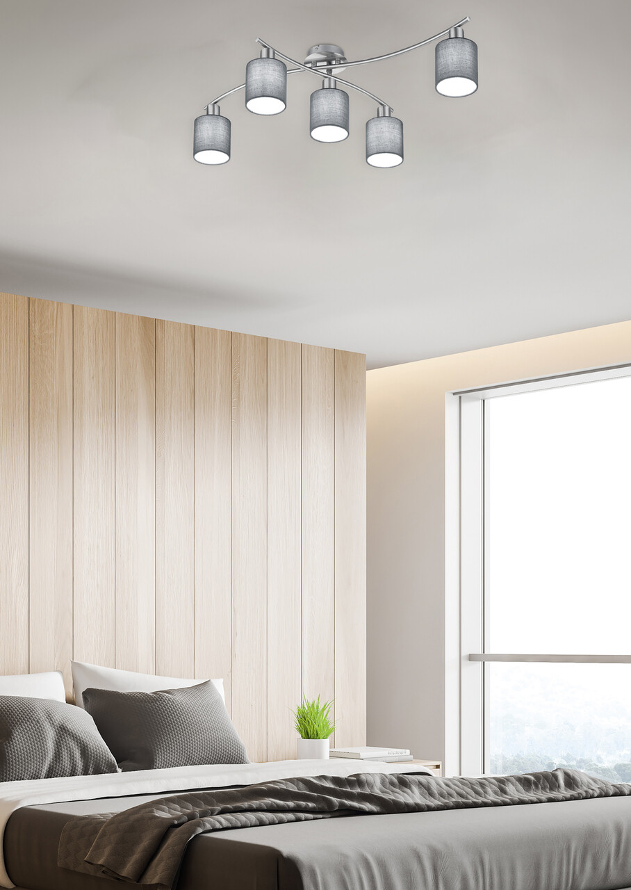 Plafoniera GARDA este un accesoriu decorativ de zi cu zi, dar si un accesoriu decorativ pentru casa. Ofera o iluminare suficienta atat in zona de la intrare, cat si in sufragerie sau dormitor si creeaza in acelasi timp o atmosfera placuta. Bratele pivotante ale lampii va permit sa directionati sursa de lumina pentru a ilumina camera asa cum doriti. Are o latime de 75 cm, o inaltime de 22 cm si o adancime de 44.2 cm. Rama metalica si abajururile din material textil se armonizeaza frumos si se potrivesc bine cu un stil de mobilier modern. Pentru o iluminare moderna si fiabila, se recomanda utilizarea unui bec LED. Ofera o calitate inalta a luminii, este versatila si convinge prin iluminarea uniforma. Durata lunga de viata si generarea redusa de caldura o fac alegerea ideala pentru o gama larga de aplicatii.Brandul TRIO ofera un portofoliu diversificat de produse inovatoare in domeniul iluminatului. Gama include idei de iluminat decorativ si functional pentru spatii interioare si exterioare.SpecificatiiBecurile nu sunt incluse.Grad de protectie: IP20Tensiune si frecventa: 230V ~ 50HzClasa de eficienta FTip soclu: 5x E14Putere: 25W