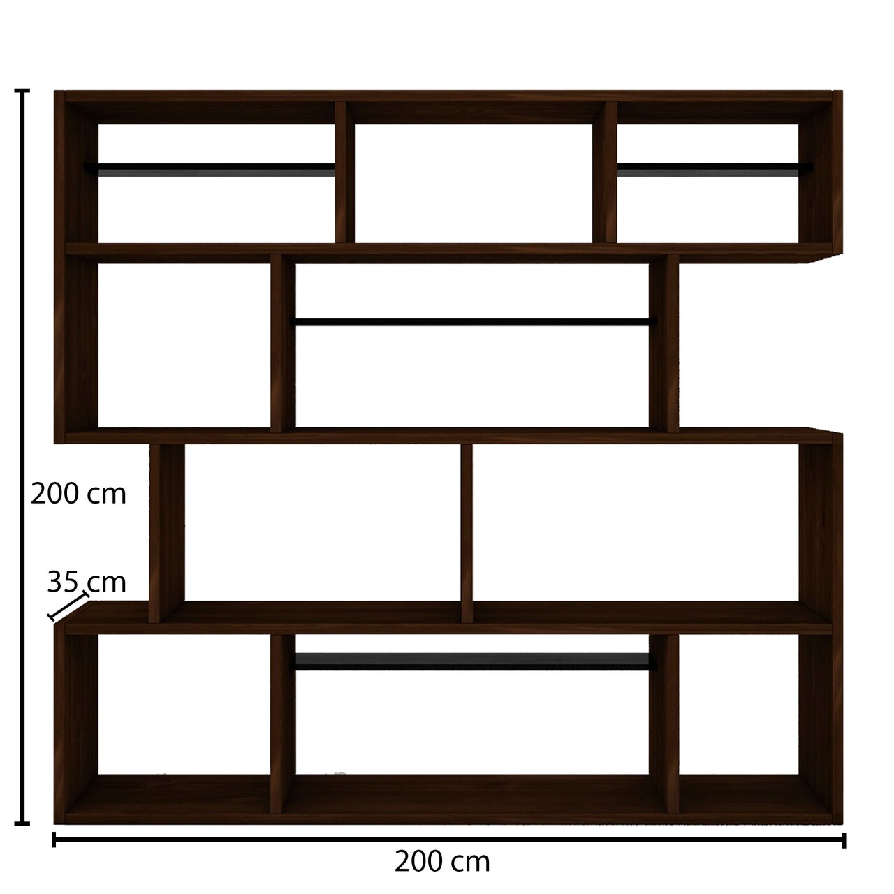 Corp biblioteca, Hanah Home, CPT6007-200, 200x200x30 cm, Lemn, Maro