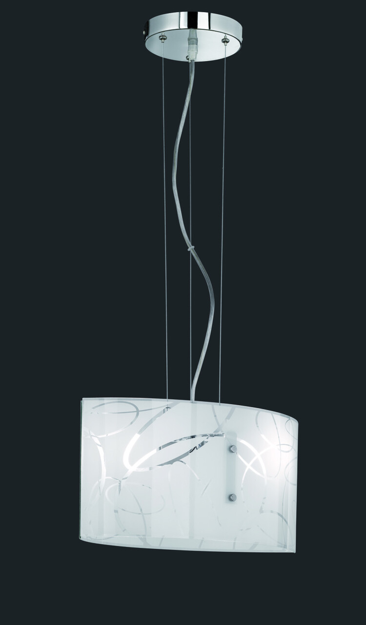 Lustra SPIRELLI impresioneaza prin eleganta sa clasica si atemporala. Sticla satinata cu decor transparent nu numai ca emite un con de lumina in jos, ci si o lumina blanda din lateral, umpland imprejurimile cu mici accente de lumina. Astfel, lustra creeaza o ambianta armonioasa in living si in sufragerie. Schema de culori neutre se integreaza perfect si, prin urmare, poate fi utilizata in aproape toate stilurile de mobilier, de la clasice la moderne. Lustra masoara 40 cm x 20 cm si poate fi montata pana la o lungime maxima a suspensiei de 150 cm. Cele doua dulii E27 pot fi echipate cu surse de lumina standard cu o putere maxima de 40 wati.Brandul TRIO ofera un portofoliu diversificat de produse inovatoare in domeniul iluminatului. Gama include idei de iluminat decorativ si functional pentru spatii interioare si exterioare.SpecificatiiBecurile nu sunt incluse.Grad de protectie: IP20Tensiune si frecventa: 230V ~ 50HzClasa de eficienta ETip soclu: 2x E27Putere: 40W