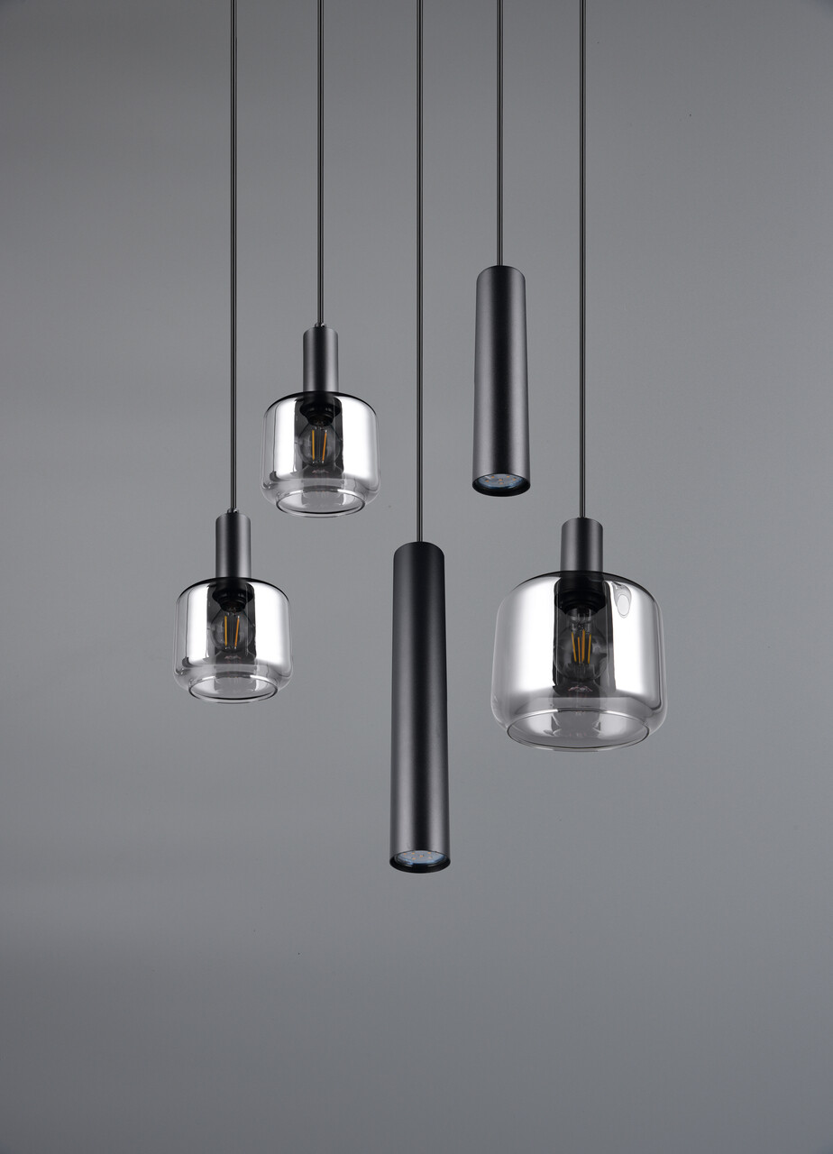 Corpul de iluminat suspendat MATARO cu cinci becuri impresioneaza prin designul sau modern si elegant. Acesta combina doua corpuri de iluminat metalice subtiri cu trei elemente din sticla care impreuna creeaza o distributie speciala a luminii si reflexii fascinante in camera. Combinatia armonioasa a acestor materiale nu numai ca imbunatateste aspectul casei dumneavoastra, dar face ca lumina sa atraga atentia deasupra oricarei mese. Metalul este negru mat, in timp ce elementele din sticla sunt cromate, conferind corpului de iluminat o stralucire subtila si un usor efect de oglinda. Pentru o iluminare moderna si fiabila, se recomanda utilizarea unui bec LED. Ofera o calitate inalta a luminii, este versatil si convinge prin iluminarea uniforma. Durata lunga de viata si generarea redusa de caldura il fac alegerea ideala pentru o gama larga de aplicatii.Brandul TRIO ofera un portofoliu diversificat de produse inovatoare in domeniul iluminatului. Gama include idei de iluminat decorativ si functional pentru spatii interioare si exterioare.SpecificatiiBecurile nu sunt incluse.Grad de protectie: IP20Tensiune si frecventa: 230V ~ 50Hz / 230V ~ 50HzClasa de eficienta FTemperatura culoare: 3000KTip soclu: 1x E27 / 2x E14 / 2x GU10Putere: 10W / 10WFlux luminos: 320 lumeni