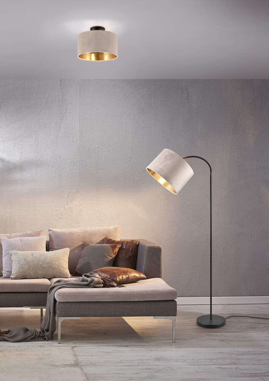 Frumusetea clasica si simpla a lampadarului JULIETA este eleganta si atmosferica. Culoarea neutra si materialul cald al abajurului invaluie corpul de iluminat intr-o atmosfera confortabila si radiaza calm in imprejurimi. Culoarea aurie de pe interiorul abajurului reglabil flexibil face ca lampadarul sa atraga atentia cu stil. Aduceti o ambianta armonioasa in dormitorul sau sufrageria dumneavoastra! Amestecul de materiale din metal negru mat si catifea bej poate fi usor combinat cu interioarele existente. Pentru o iluminare moderna si fiabila, se recomanda utilizarea unui bec LED. Ofera o calitate inalta a luminii, este versatila si convinge prin iluminarea uniforma. Durata lunga de viata si generarea redusa de caldura o fac alegerea ideala pentru o gama larga de aplicatii.Brandul TRIO ofera un portofoliu diversificat de produse inovatoare in domeniul iluminatului. Gama include idei de iluminat decorativ si functional pentru spatii interioare si exterioare.SpecificatiiBecul nu este inclus.Grad de protectie: IP20Tensiune si frecventa: 230V ~ 50HzClasa de eficienta ETip soclu: 1x E27Putere: 60W