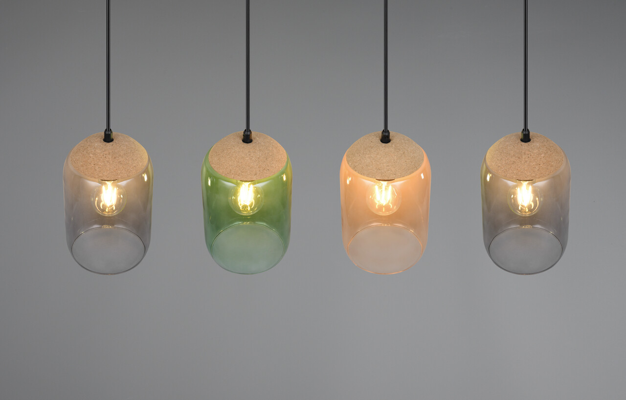 Un joc fascinant de lumina si sustenabilitate - lustra CORK cu trei puncte de lumina este piesa centrala perfecta. Combinatia armonioasa de sticla reciclata si pluta da viata culorilor vietii. Cu aspectul sau estetic, se integreaza perfect in zona de living si de luat masa si creeaza o ambianta confortabila cu tonuri calde de culoare. Paleta sa de culori verde, chihlimbar si fumuriu creeaza un sentiment de conexiune cu natura. Utilizarea amestecului de materiale pluta, sticla si metal intareste acest sentiment de natura si confera incaperii un echilibru armonios intre naturalete si design modern. Pentru o iluminare moderna si fiabila, se recomanda utilizarea unui bec LED. Ofera o calitate inalta a luminii, este versatila si convinge prin iluminarea uniforma. Durata lunga de viata si generarea redusa de caldura o fac alegerea ideala pentru o gama larga de aplicatii.Brandul TRIO ofera un portofoliu diversificat de produse inovatoare in domeniul iluminatului. Gama include idei de iluminat decorativ si functional pentru spatii interioare si exterioare.SpecificatiiBecurile nu sunt incluse.Grad de protectie: IP20Tensiune si frecventa: 230V ~ 50HzClasa de eficienta ETip soclu: 4x E27Putere: 10W