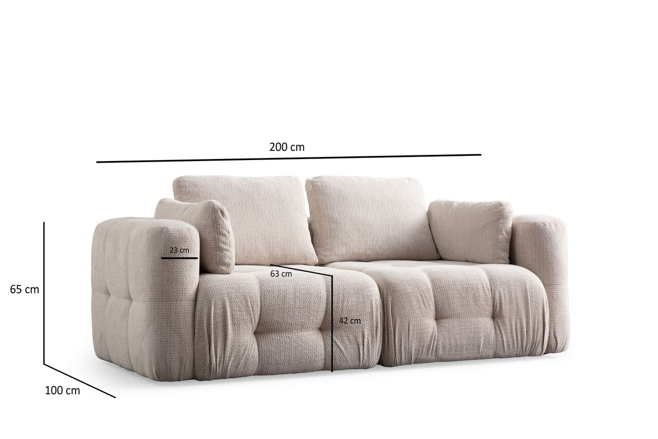 Canapea 2 locuriTesatura: PoliesterLungime: 300 cm Width: 120 cm Inaltime: 65 cmSpuma: 28 DNS spumă moale gri / 24 DNS Feather60% spumă tăiată / 40% spumă de silicon pentru spateBack Pillow: 50 x 50 cmPernele sunt incluse.Picioare: Picioare mici din plastic negru (3 cm)Inaltime sezut: 42 cm Adancime sezut: 81 cmSeat Depth width Pillows: 63 cmLatime spate: 65 cmLățimea cotierei: 23 cmInaltime cotiera: 65 cm